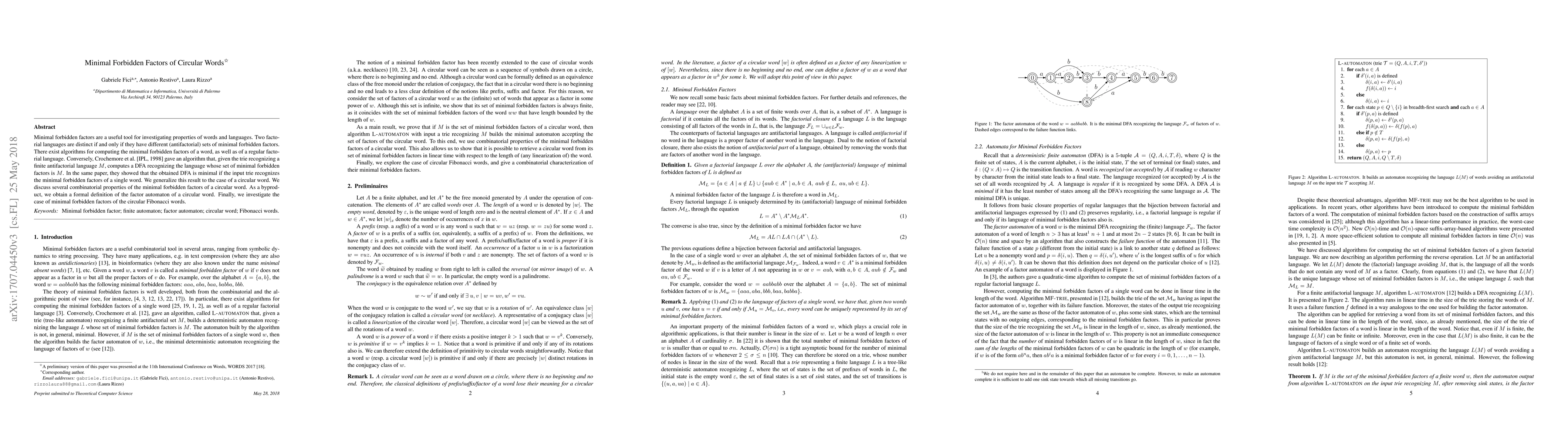 This paper generalizes the computation of minimal forbidden factors to circular words, discussing their combinatorial properties and introducing the concept of a factor automaton for circular words. It also explores the minimal forbidden factors of circular Fibonacci words, extending previous results for linear words.