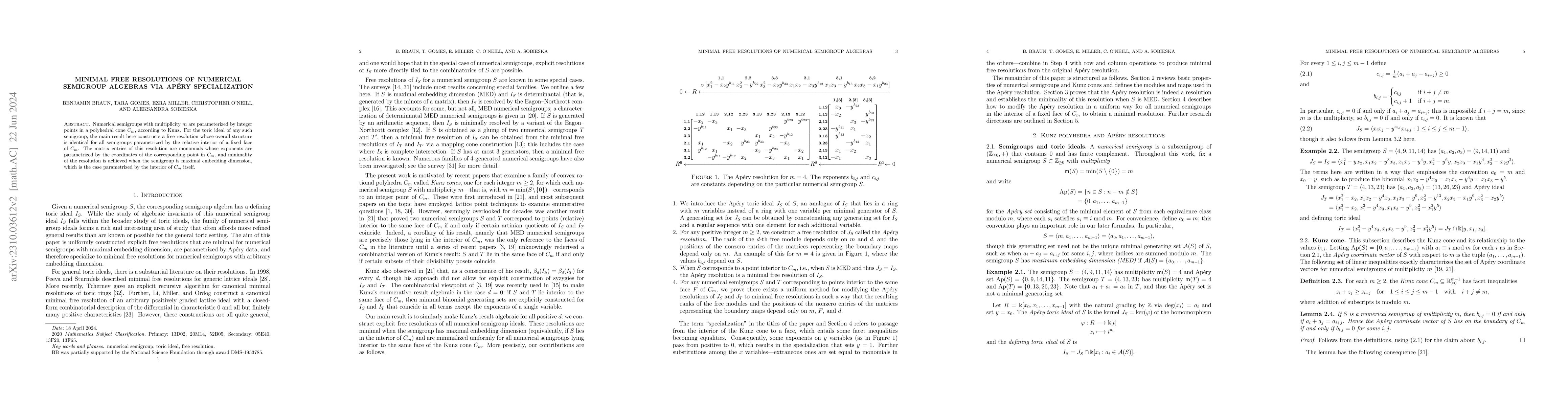 This paper constructs minimal free resolutions for numerical semigroup algebras using Apéry specialization, demonstrating that for semigroups within the relative interior of a fixed face of the polyhedral cone $C_m$, the resolutions share the same structure, with resolution matrix entries parameterized by the coordinates of points in $C_m$. The resolutions achieve minimality when the semigroup has maximal embedding dimension.