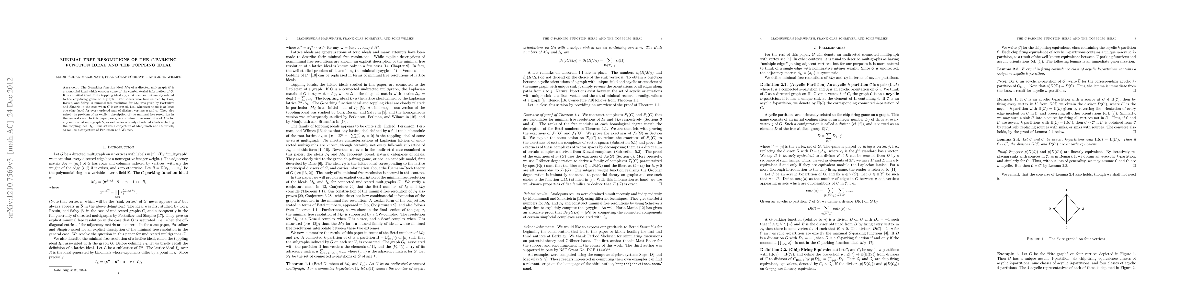 The $G$-parking function ideal $M_G$ of a directed multigraph $G$ is a monomial ideal which encodes some of the combinatorial information of $G$. It is an initial ideal of the toppling ideal $I_G$, a lattice ideal intimately related to the chip-firing game on a graph. Both ideals were first studied by Cori, Rossin, and Salvy. A minimal free resolution for $M_G$ was given by Postnikov and Shaprio in the case when $G$ is saturated, i.\,e., whenever there is at least one edge $(u,v)$ for every ordered pair of distinct vertices $u$ and $v$. They also raised the problem of an explicit description of the minimal free resolution in the general case. In this paper, we give a minimal free resolution of $M_G$ for any undirected multigraph $G$, as well as for a family of related ideals including the toppling ideal $I_G$. This settles a conjecture of Manjunath and Sturmfels, as well as a conjecture of Perkinson and Wilmes.