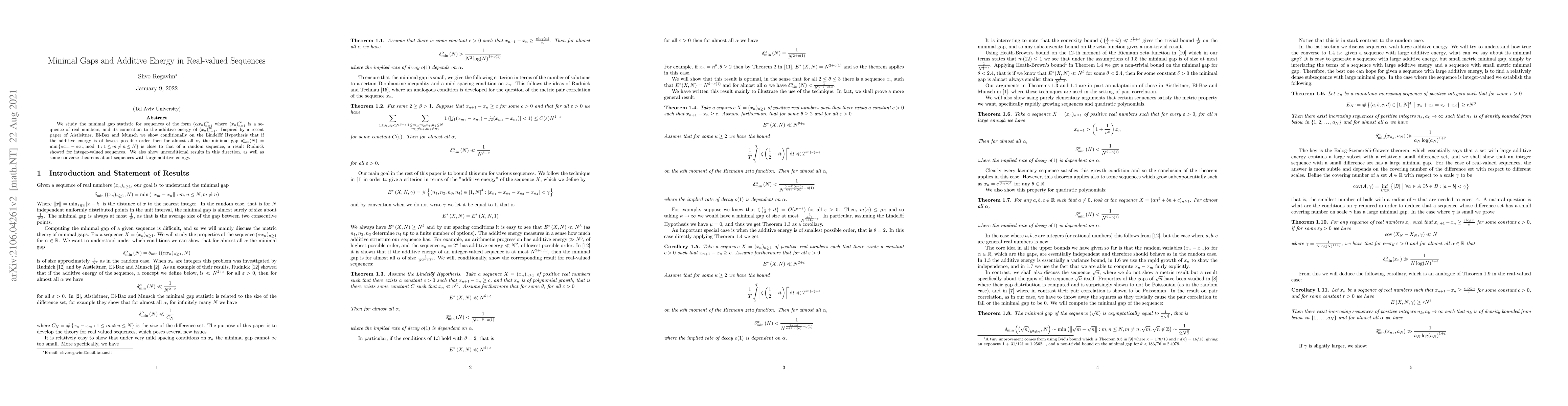We study the minimal gap statistic for sequences of the form $\left( \alpha x_n \right)_{n = 1}^{\infty}$ where $\left( x_n \right)_{n = 1}^{\infty}$ is a sequence of real numbers, and its connection to the additive energy of $\left( x_n \right)_{n = 1}^{\infty}$. Inspired by a recent paper of Aistleitner, El-Baz and Munsch we show conditionally on the Lindel\"{o}f Hypothesis that if the additive energy is of lowest possible order then for almost all $\alpha$, the minimal gap $\delta_{\min}^{\alpha} (N) = \min \left\{ \alpha x_m - \alpha x_n \bmod \ 1 : 1 \leq m \neq n \leq N \right\}$ is close to that of a random sequence, a result Rudnick showed for integer-valued sequences. We also show unconditional results in this direction, as well as some converse theorems about sequences with large additive energy.