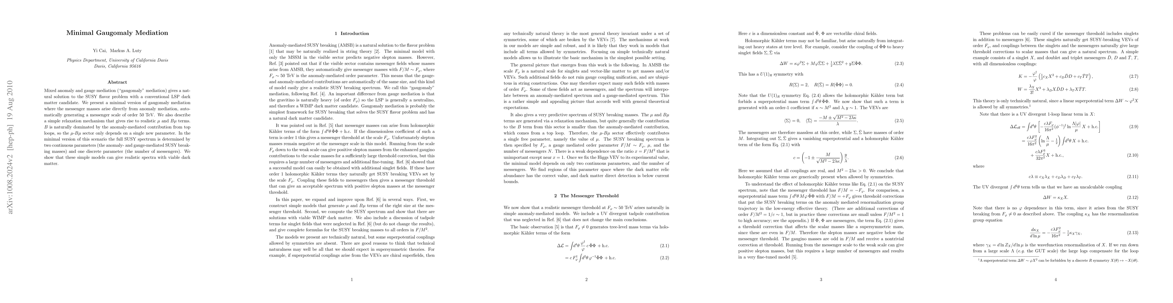 This paper presents a minimal version of mixed anomaly and gauge mediation ("gaugomaly mediation") that naturally solves the SUSY flavor problem and provides a viable dark matter candidate. The model determines the full SUSY spectrum with two continuous and one discrete parameter, offering realistic spectra and a simple relaxation mechanism for mu and B mu terms.