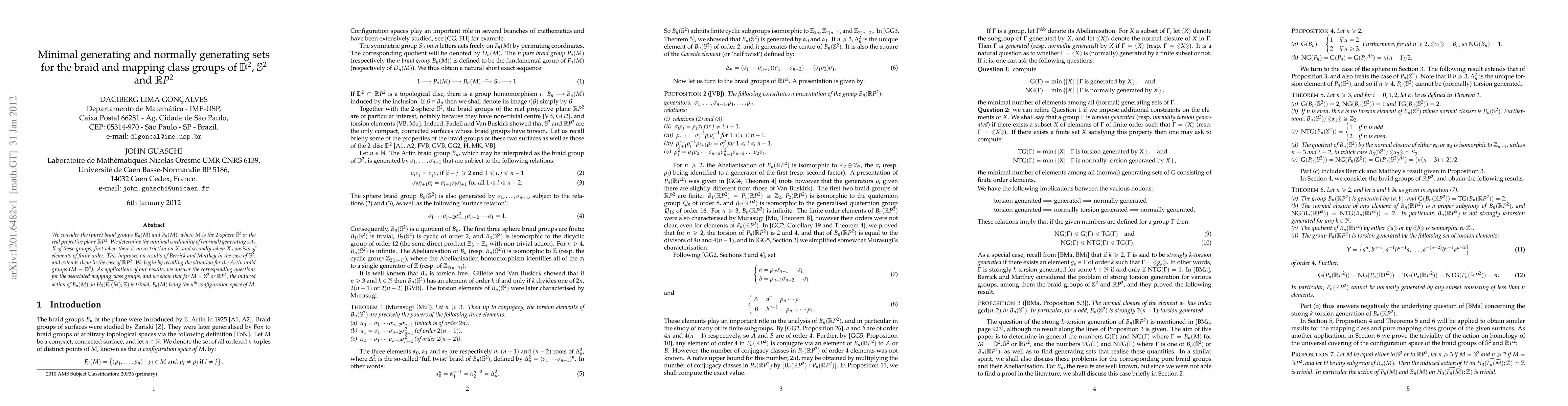 We consider the (pure) braid groups B_{n}(M) and P_{n}(M), where M is the 2-sphere S^2 or the real projective plane RP^2. We determine the minimal cardinality of (normal) generating sets X of these groups, first when there is no restriction on X, and secondly when X consists of elements of finite order. This improves on results of Berrick and Matthey in the case of S^2, and extends them in the case of RP^2. We begin by recalling the situation for the Artin braid groups. As applications of our results, we answer the corresponding questions for the associated mapping class groups, and we show that for M=S^2 or RP^2, the induced action of B_n(M) on H_3 of the universal covering of the n th configuration space of M is trivial.