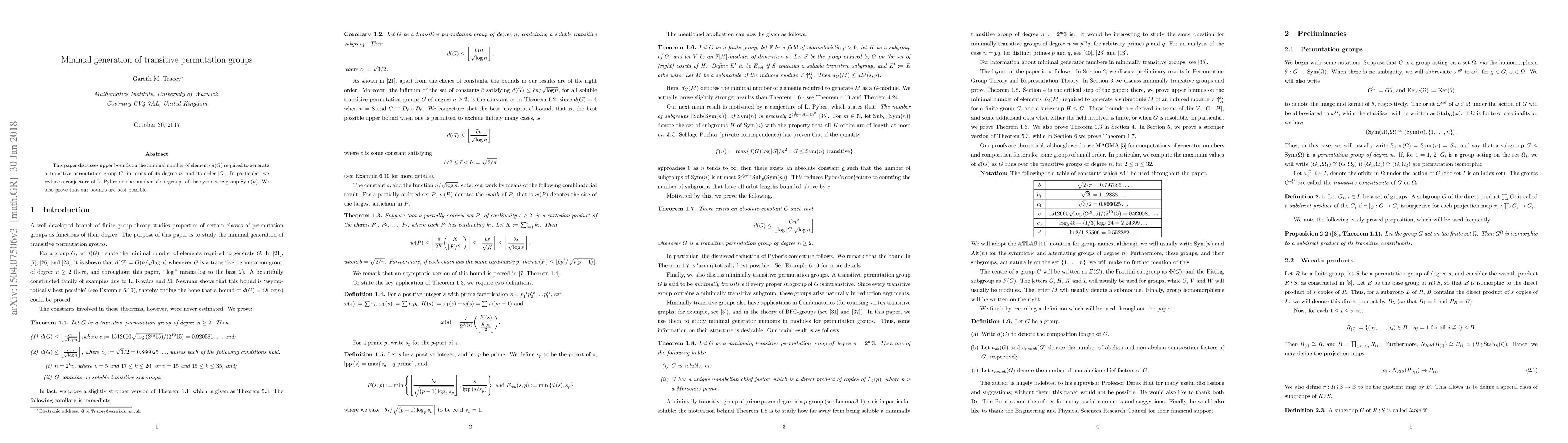 Researchers estimate a constant c for generating transitive permutation groups of degree d with a specific number of elements, improving upon previous bounds.