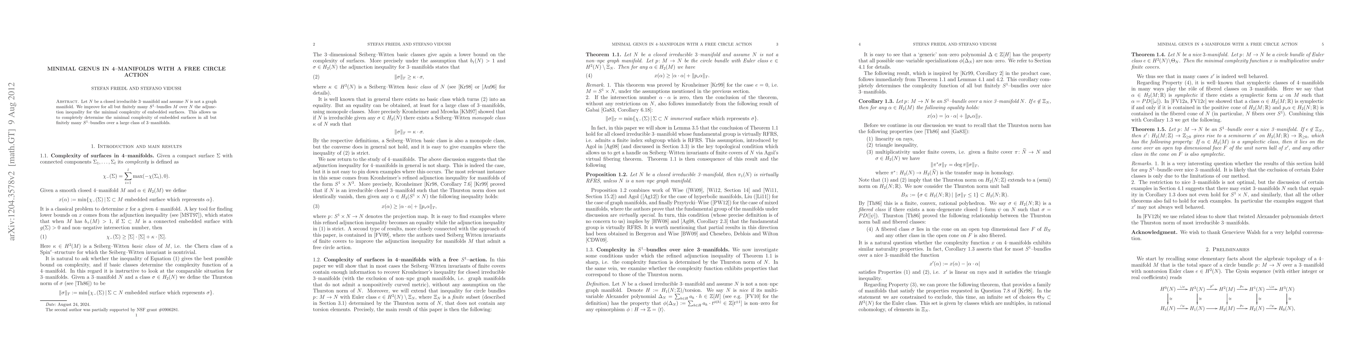 Let N be a closed irreducible 3-manifold and assume N is not a graph manifold. We improve for all but finitely many S^1-bundles M over N the adjunction inequality for the minimal complexity of embedded surfaces. This allows us to completely determine the minimal complexity of embedded surfaces in all but finitely many S^1-bundles over a large class of 3-manifolds.