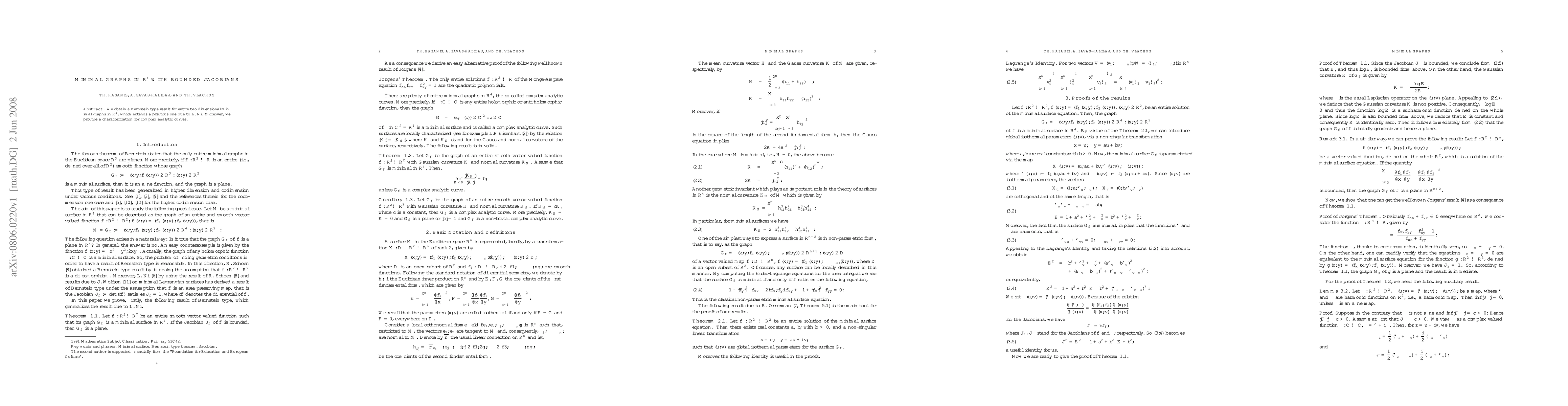 This research establishes a Bernstein-type theorem for entire 2D minimal graphs in $mathbb{R}^4$, extending a prior result by L. Ni. It also offers a characterization for complex analytic curves.