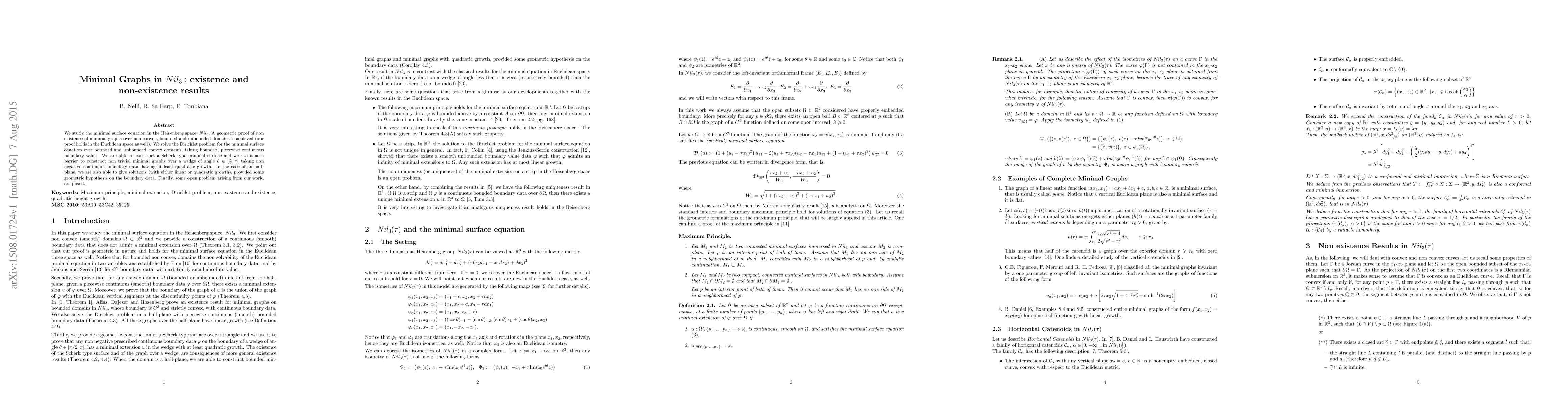 This paper investigates minimal surface equations in the Heisenberg space Nil_3, proving non-existence of minimal graphs over non-convex domains and solving the Dirichlet problem for convex domains. It constructs Scherk-type minimal surfaces and explores solutions with specific boundary conditions.