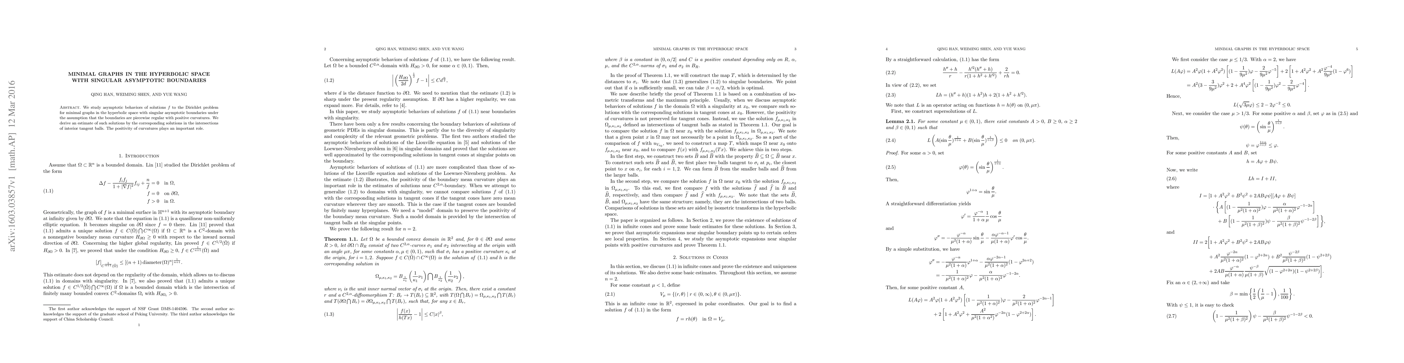 This paper investigates the asymptotic behavior of minimal graph solutions in hyperbolic space with singular boundaries, deriving an estimate based on solutions in interior tangent ball intersections, emphasizing the significance of positive boundary curvatures.