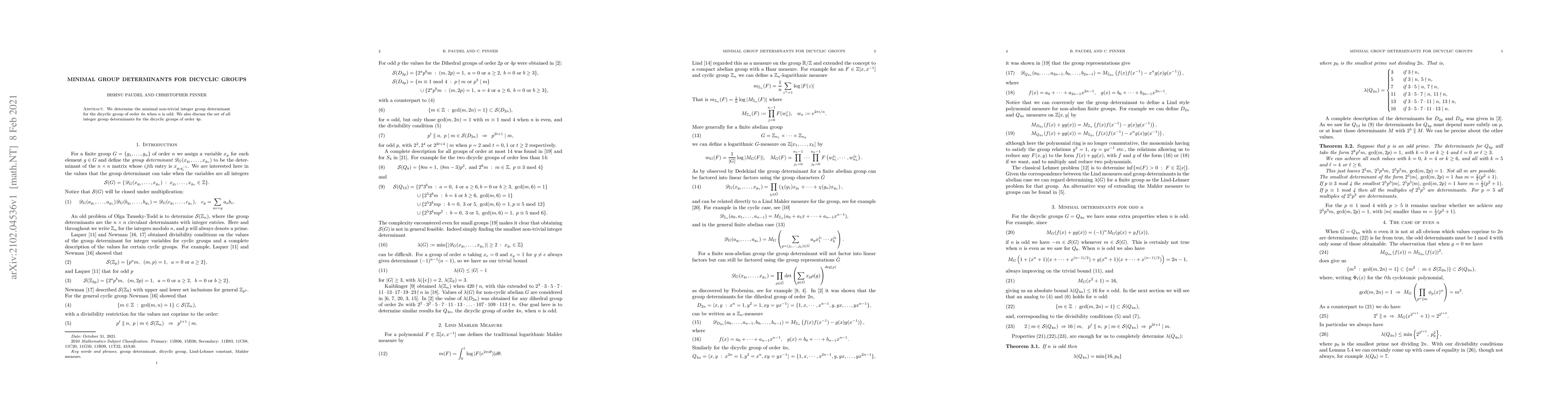 Summary: This paper identifies the smallest non-trivial integer determinant for the dicyclic group of order $4n$ when $n$ is odd. It also explores the complete set of integer group determinants for dicyclic groups of order $4p$.