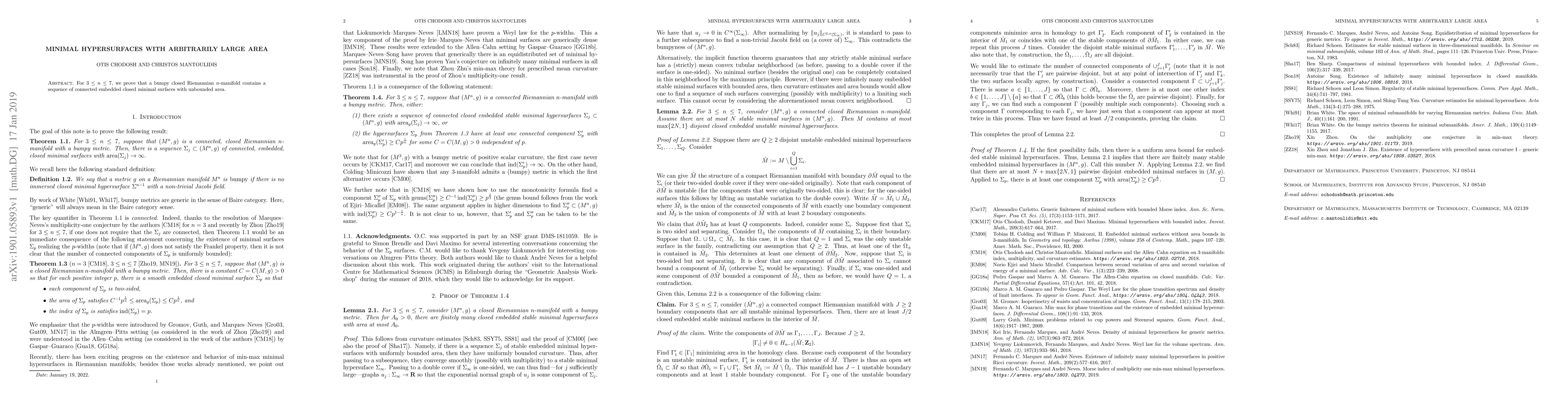For 3 $\leq$ n $\leq$ 7, we prove that a bumpy closed Riemannian n-manifold contains a sequence of connected embedded closed minimal surfaces with unbounded area.