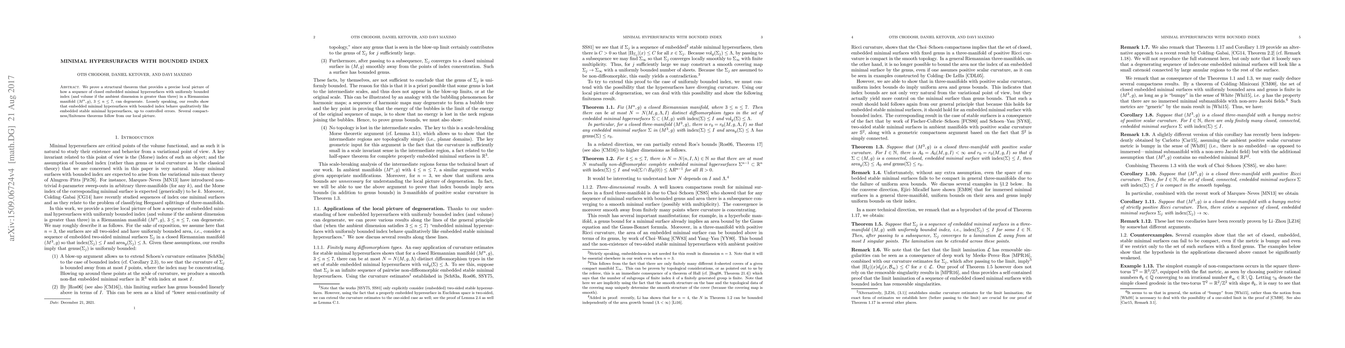 The paper proves a structural theorem describing the local behavior of sequences of closed minimal hypersurfaces with bounded index in low-dimensional Riemannian manifolds, showing they resemble stable minimal hypersurfaces, and derives several compactness theorems from this insight.