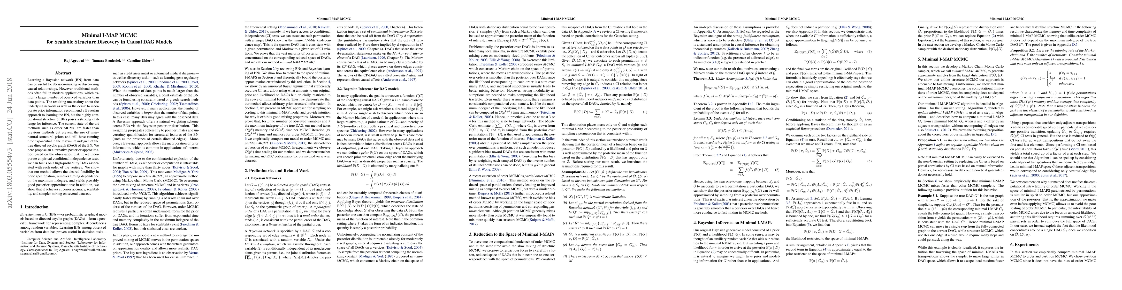 Learning a Bayesian network (BN) from data can be useful for decision-making or discovering causal relationships. However, traditional methods often fail in modern applications, which exhibit a larger number of observed variables than data points. The resulting uncertainty about the underlying network as well as the desire to incorporate prior information recommend a Bayesian approach to learning the BN, but the highly combinatorial structure of BNs poses a striking challenge for inference. The current state-of-the-art methods such as order MCMC are faster than previous methods but prevent the use of many natural structural priors and still have running time exponential in the maximum indegree of the true directed acyclic graph (DAG) of the BN. We here propose an alternative posterior approximation based on the observation that, if we incorporate empirical conditional independence tests, we can focus on a high-probability DAG associated with each order of the vertices. We show that our method allows the desired flexibility in prior specification, removes timing dependence on the maximum indegree and yields provably good posterior approximations; in addition, we show that it achieves superior accuracy, scalability, and sampler mixing on several datasets.