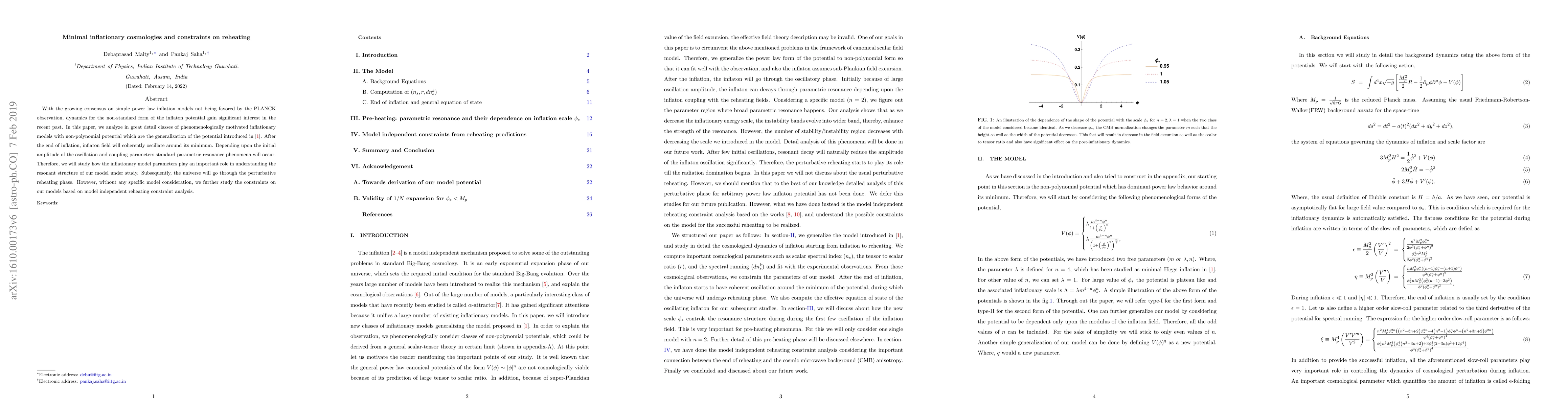 With the growing consensus on simple power law inflation models not being favored by the PLANCK observation, dynamics for the non-standard form of the inflaton potential gain significant interest in the recent past. In this paper, we analyze in great detail classes of phenomenologically motivated inflationary models with non-polynomial potential which are the generalization of the potential introduced in \cite{mhiggs}. After the end of inflation, inflaton field will coherently oscillate around its minimum. Depending upon the initial amplitude of the oscillation and coupling parameters standard parametric resonance phenomena will occur. Therefore, we will study how the inflationary model parameters play an important role in understanding the resonant structure of our model under study. Subsequently, the universe will go through the perturbative reheating phase. However, without any specific model consideration, we further study the constraints on our models based on model independent reheating constraint analysis.
