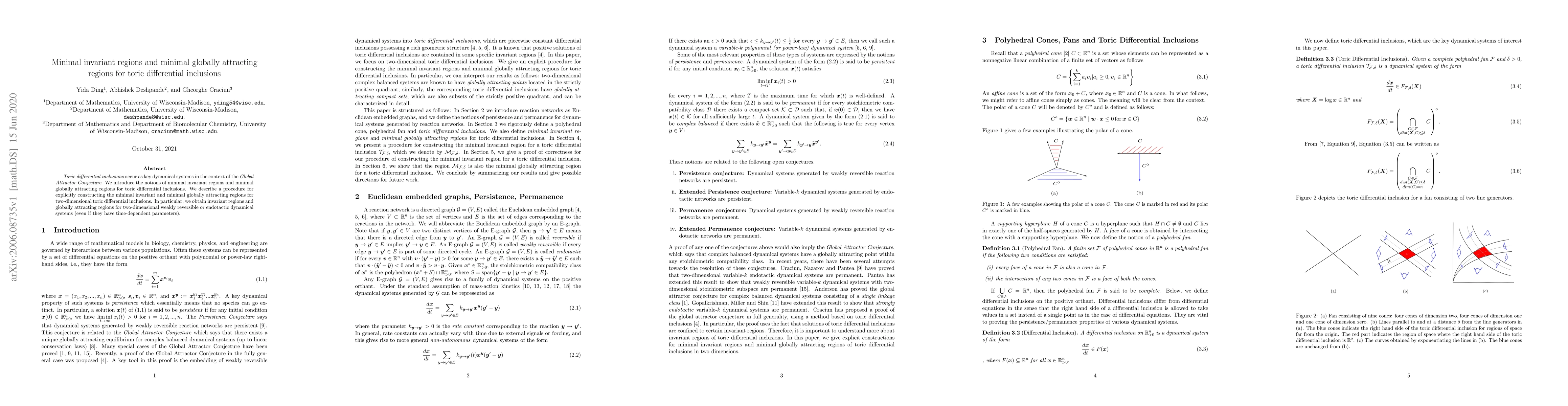 This paper introduces the concepts of minimal invariant and minimal globally attracting regions for toric differential inclusions, crucial in the Global Attractor Conjecture. It presents a method to explicitly construct these regions for two-dimensional systems, including weakly reversible or endotactic dynamical systems with time-dependent parameters.