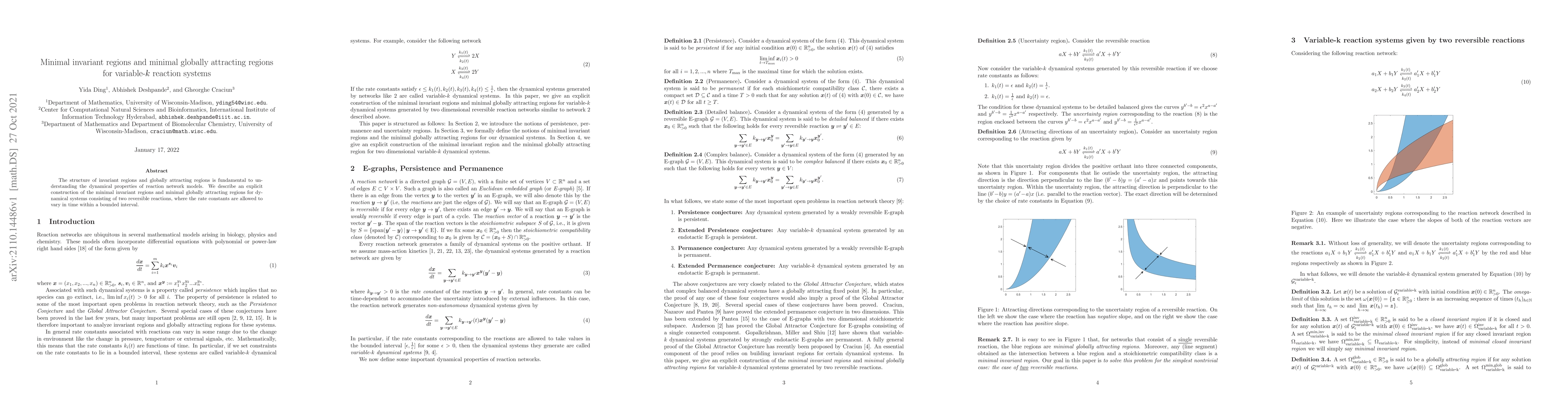 Summary: This paper constructs minimal invariant and globally attracting regions for time-varying rate constants in two-reaction systems, providing a foundational understanding of the dynamical properties of reaction network models. The approach offers explicit constructions for these regions.