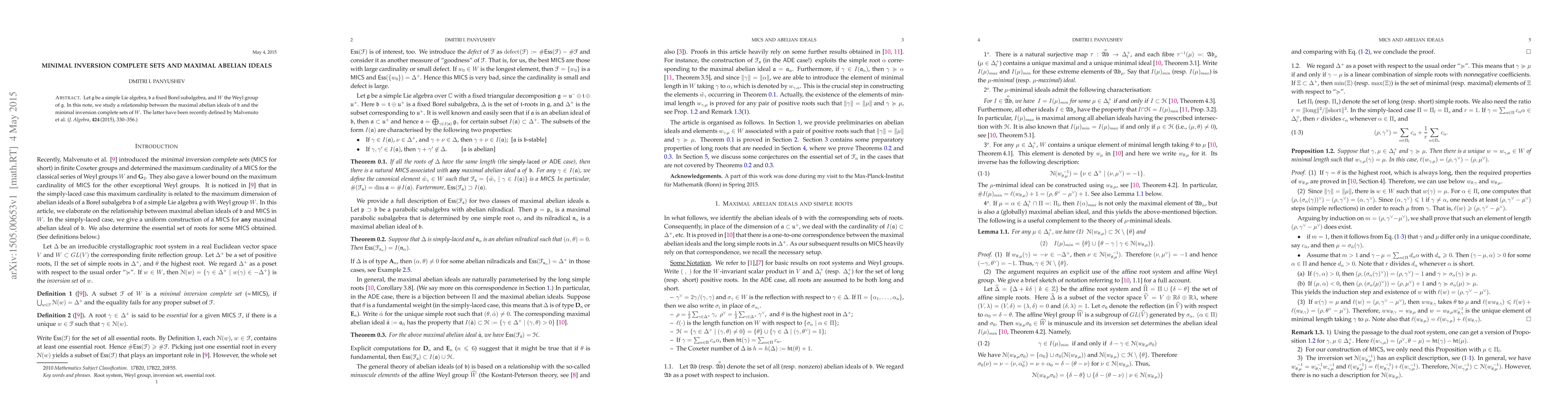 This paper explores the connection between maximal abelian ideals of a Borel subalgebra $\mathfrak b$ in a simple Lie algebra $\mathfrak g$ and minimal inversion complete sets of the Weyl group $W$ of $\mathfrak g$. The study leverages recent definitions of minimal inversion complete sets by Malvenuto et al.