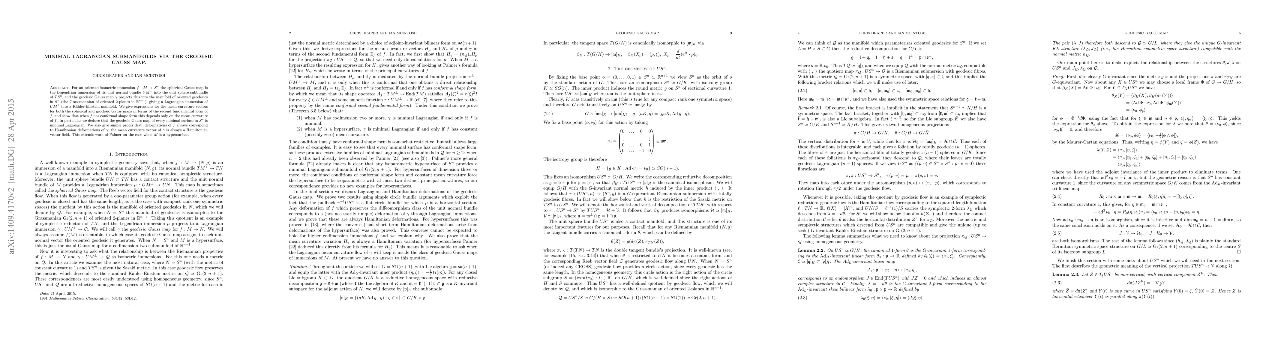 This paper explores the relationship between minimal Lagrangian submanifolds and the geodesic Gauss map, showing that the geodesic Gauss map of minimal surfaces in $S^n$ is a minimal Lagrangian. It also provides expressions for mean curvature vectors and proves that deformations of the immersion correspond to Hamiltonian deformations of the geodesic Gauss map.
