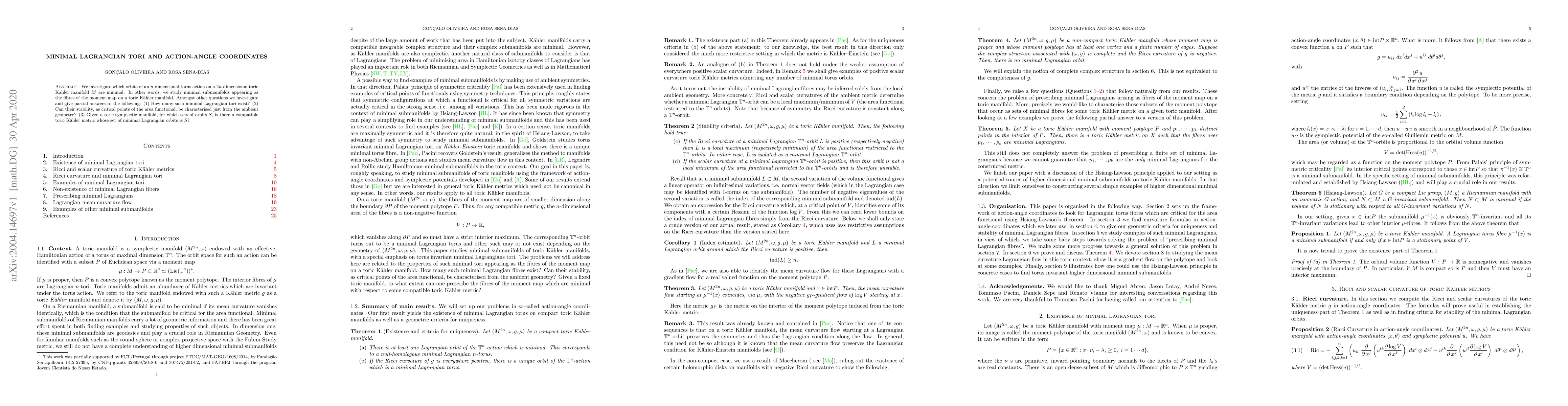 We investigate which orbits of an $n$-dimensional torus action on a $2n$-dimensional toric K\"ahler manifold $M$ are minimal. In other words, we study minimal submanifolds appearing as the fibres of the moment map on a toric K\"ahler manifold. Amongst other questions we investigate and give partial answers to the following: (1) How many such minimal Lagrangian tori exist? (2) Can their stability, as critical points of the area functional, be characterised just from the ambient geometry? (3) Given a toric symplectic manifold, for which sets of orbits $S$, is there a compatible toric K\"ahler metric whose set of minimal Lagrangian orbits is $S$?