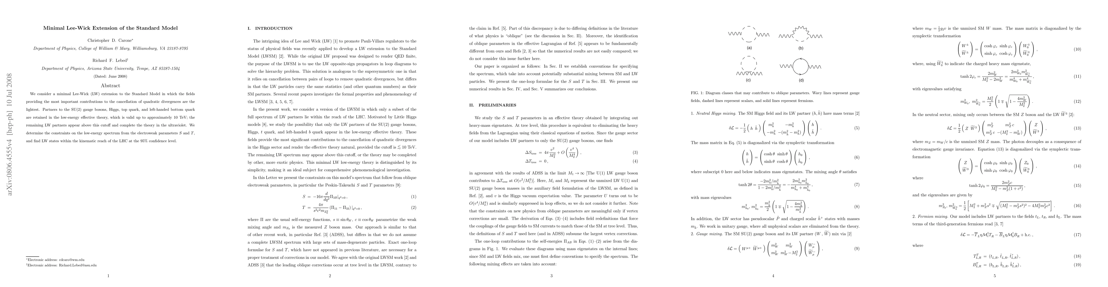 We consider a minimal Lee-Wick (LW) extension to the Standard Model in which the fields providing the most important contributions to the cancellation of quadratic divergences are the lightest. Partners to the SU(2) gauge bosons, Higgs, top quark, and left-handed bottom quark are retained in the low-energy effective theory, which is valid up to approximately 10 TeV; the remaining LW partners appear above this cutoff and complete the theory in the ultraviolet. We determine the constraints on the low-energy spectrum from the electroweak parameters S and T, and find LW states within the kinematic reach of the LHC at the 95% confidence level.