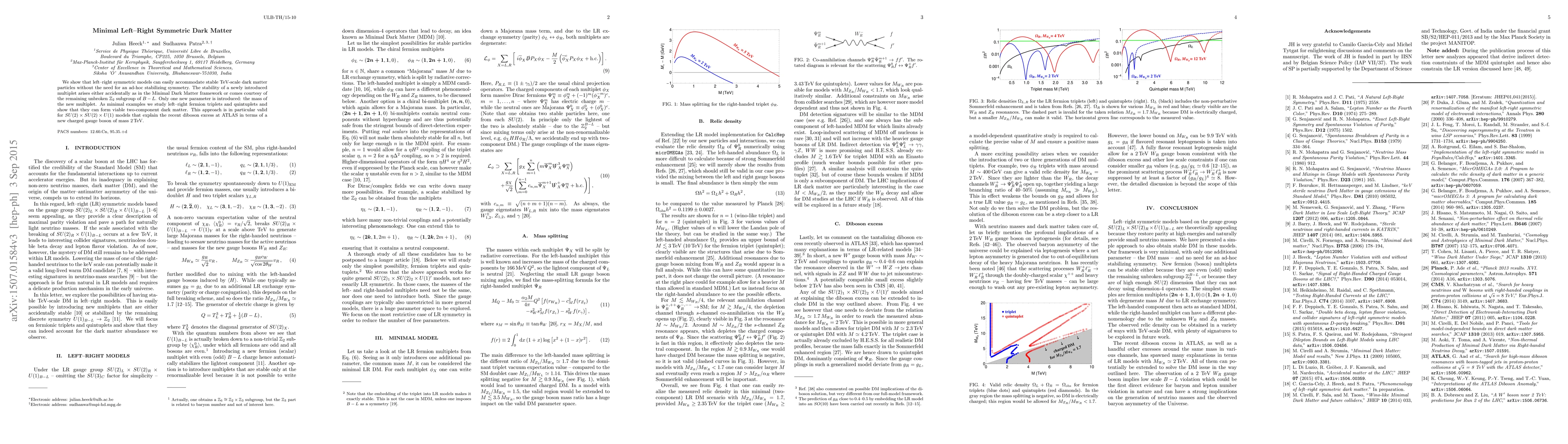 We show that left-right symmetric models can easily accommodate stable TeV-scale dark matter particles without the need for an ad-hoc stabilizing symmetry. The stability of a newly introduced multiplet arises either accidentally as in the Minimal Dark Matter framework or comes courtesy of the remaining unbroken $\mathbb{Z}_2$ subgroup of $B-L$. Only one new parameter is introduced: the mass of the new multiplet. As minimal examples we study left-right fermion triplets and quintuplets and show that they can form viable two-component dark matter. This approach is in particular valid for $SU(2)\times SU(2)\times U(1)$ models that explain the recent diboson excess at ATLAS in terms of a new charged gauge boson of mass 2 TeV.