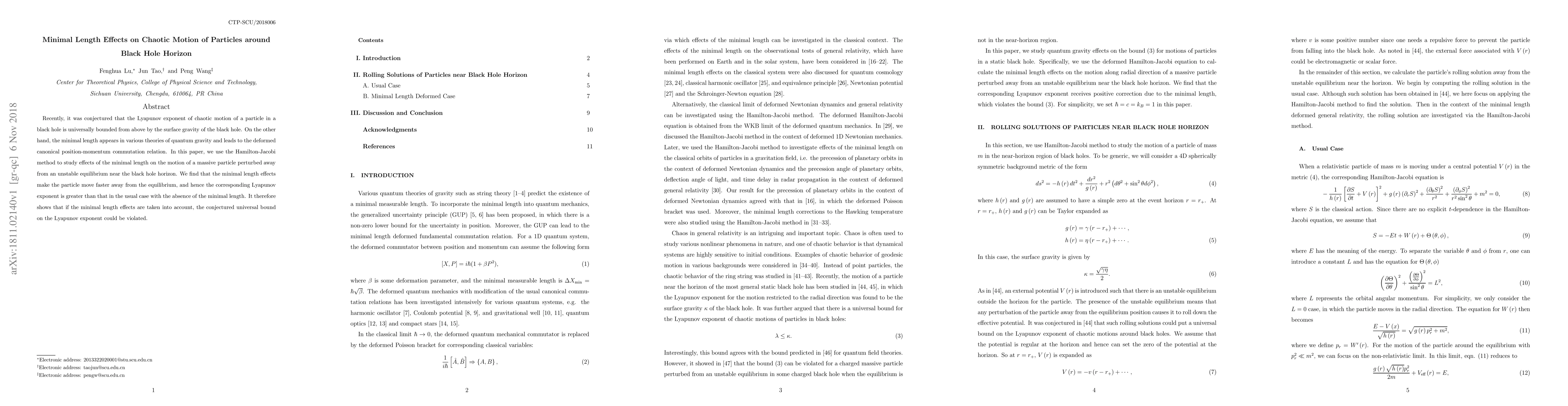 This paper investigates the impact of minimal length, arising from quantum gravity theories, on chaotic motion of particles near a black hole horizon using the Hamilton-Jacobi method. It finds that minimal length effects increase the particle's escape speed, thereby raising the Lyapunov exponent and potentially invalidating the conjectured universal upper bound on it.