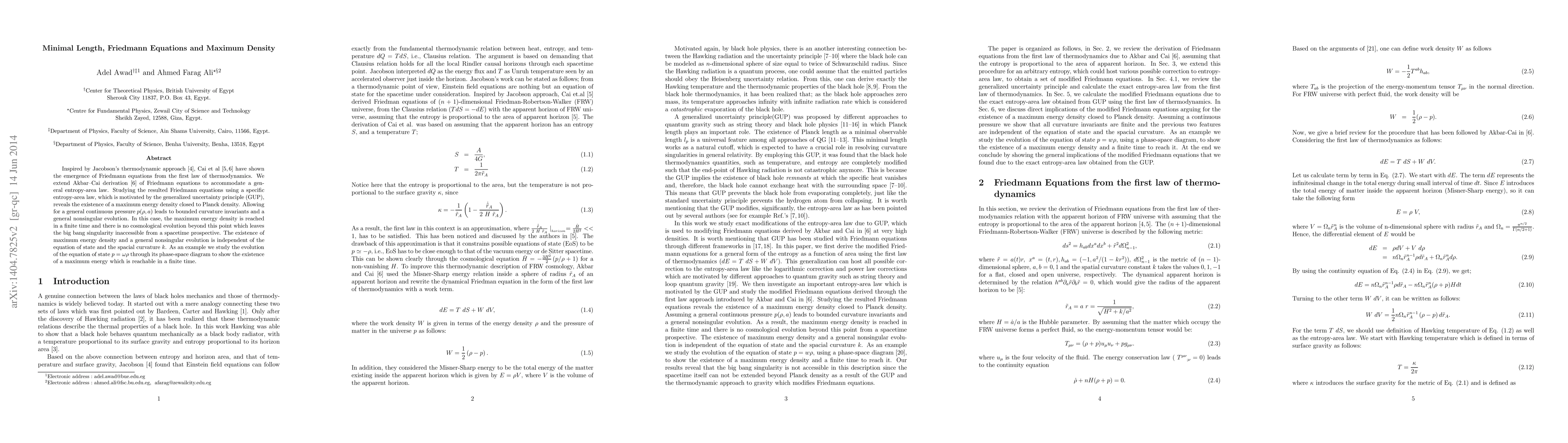 Inspired by Jacobson's thermodynamic approach[gr-qc/9504004], Cai et al [hep-th/0501055,hep-th/0609128] have shown the emergence of Friedmann equations from the first law of thermodynamics. We extend Akbar--Cai derivation [hep-th/0609128] of Friedmann equations to accommodate a general entropy-area law. Studying the resulted Friedmann equations using a specific entropy-area law, which is motivated by the generalized uncertainty principle (GUP), reveals the existence of a maximum energy density closed to Planck density. Allowing for a general continuous pressure $p(\rho,a)$ leads to bounded curvature invariants and a general nonsingular evolution. In this case, the maximum energy density is reached in a finite time and there is no cosmological evolution beyond this point which leaves the big bang singularity inaccessible from a spacetime prospective. The existence of maximum energy density and a general nonsingular evolution is independent of the equation of state and the spacial curvature $k$. As an example we study the evolution of the equation of state $p=\omega \rho$ through its phase-space diagram to show the existence of a maximum energy which is reachable in a finite time.