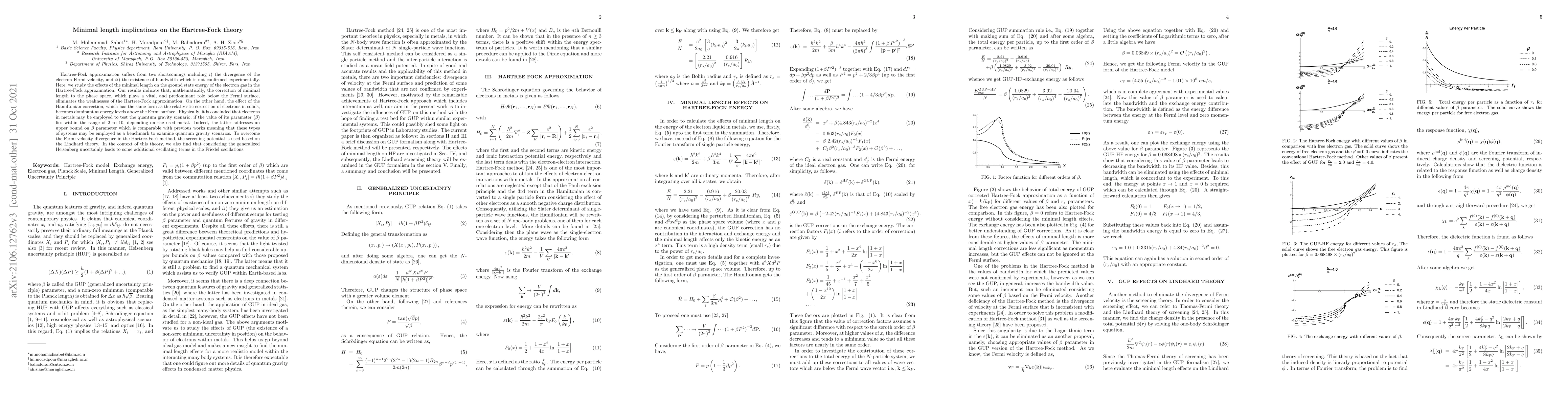 This paper investigates the impact of minimal length corrections on the Hartree-Fock theory to address its divergence issues and unconfirmed bandwidth. The study finds that incorporating minimal length terms can mitigate the weaknesses of the Hartree-Fock approximation, potentially serving as relativistic corrections in solids, and suggests that metals can test quantum gravity scenarios under certain conditions.
