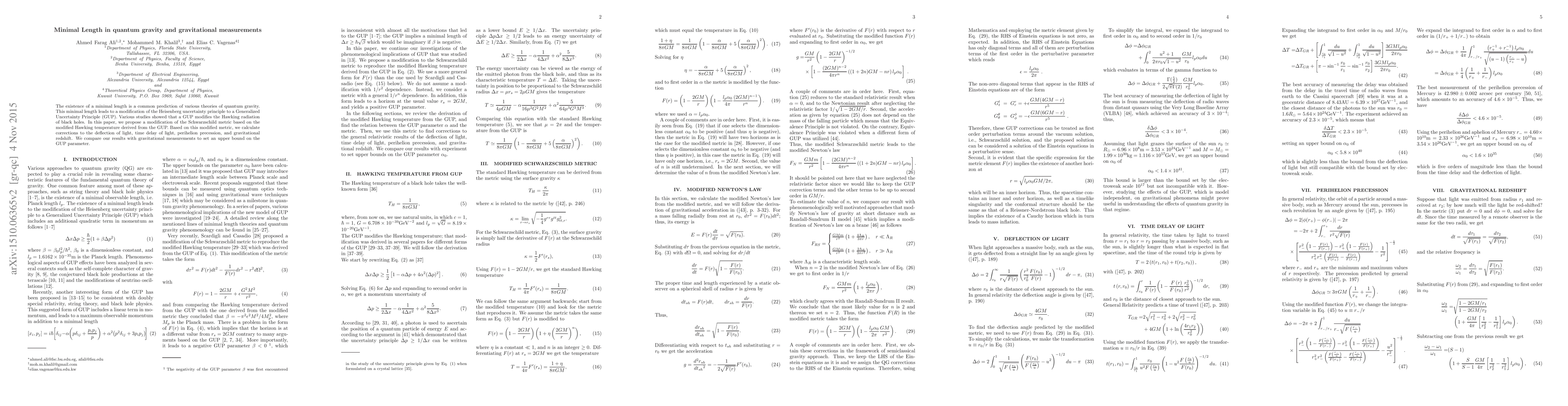 This paper explores the implications of a minimal length predicted by quantum gravity theories, proposing a modified Schwarzschild metric based on a Generalized Uncertainty Principle (GUP). It calculates corrections to gravitational phenomena and compares these to measurements to establish an upper limit on the GUP parameter.