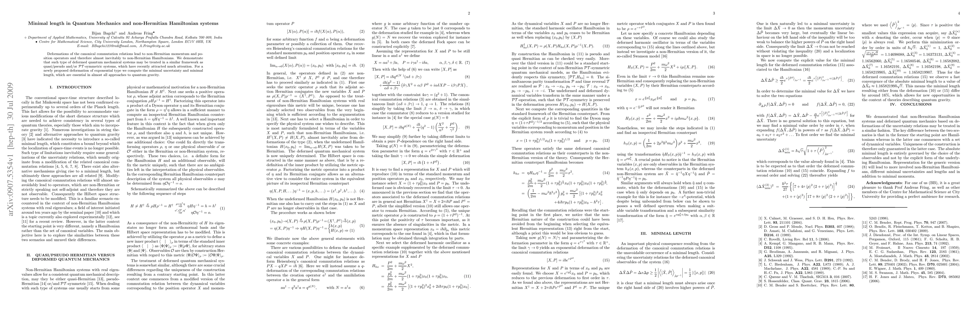 This paper explores non-Hermitian Hamiltonian systems derived from deformed canonical commutation relations, comparing them to quasi/pseudo and PT-symmetric systems. It computes the minimal uncertainty and minimal length for a newly proposed exponential deformation, crucial for quantum gravity theories.