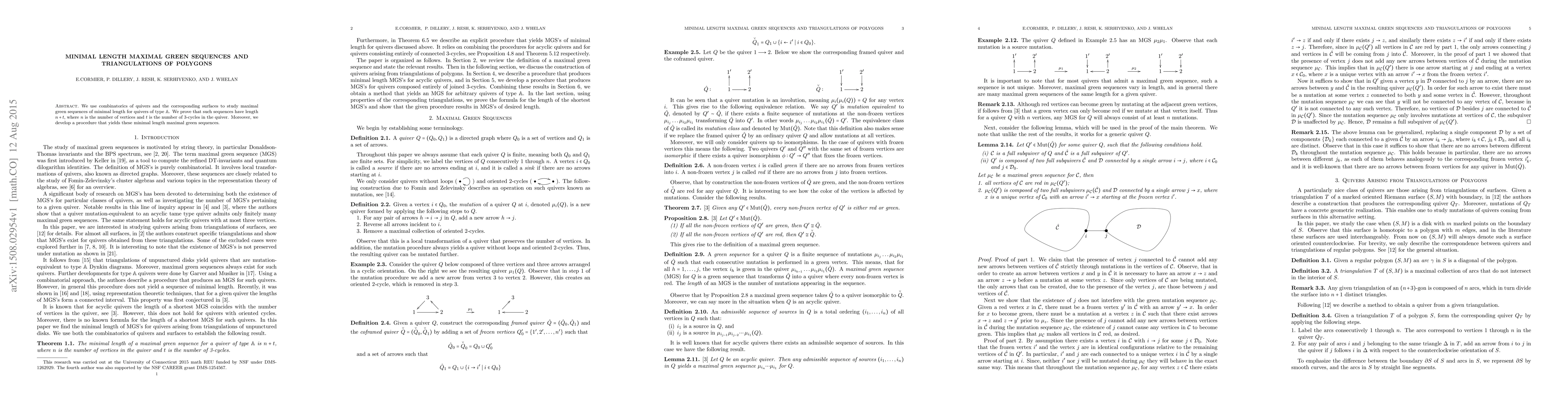 This paper explores the combinatorial properties of quivers of type $\mathbb{A}$ to determine minimal length maximal green sequences, proving they are of length $n+t$, where $n$ is the number of vertices and $t$ is the number of 3-cycles. It also presents a method for generating these sequences.