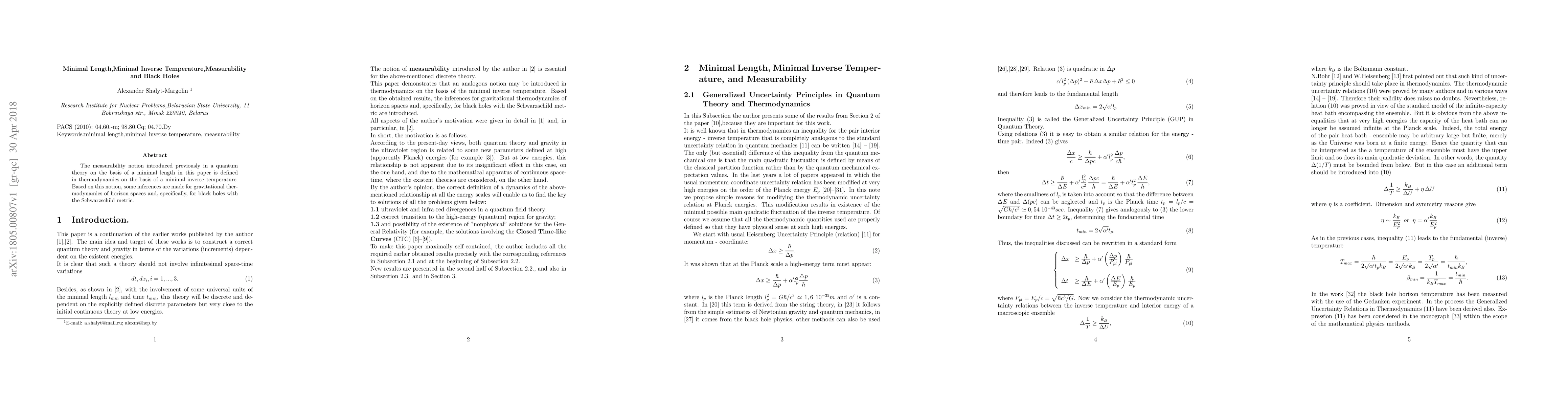 Researchers investigate how black holes behave thermodynamically based on a new concept of minimal inverse temperature, which relates to the fundamental laws of physics. They make inferences about horizon spaces and black holes with the Schwarzschild metric.
