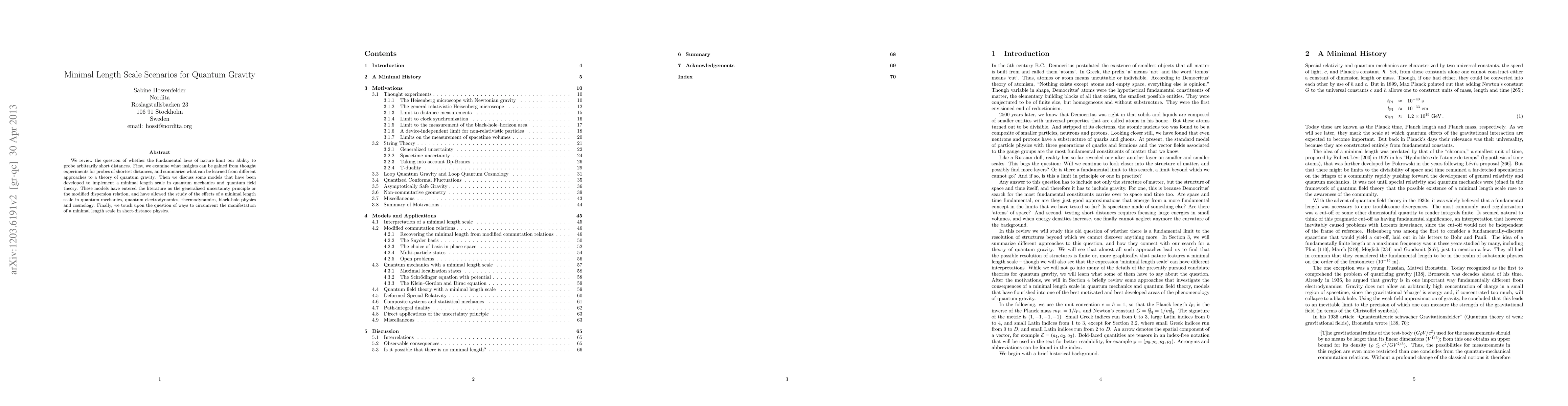 We review the question of whether the fundamental laws of nature limit our ability to probe arbitrarily short distances. First, we examine what insights can be gained from thought experiments for probes of shortest distances, and summarize what can be learned from different approaches to a theory of quantum gravity. Then we discuss some models that have been developed to implement a minimal length scale in quantum mechanics and quantum field theory. These models have entered the literature as the generalized uncertainty principle or the modified dispersion relation, and have allowed the study of the effects of a minimal length scale in quantum mechanics, quantum electrodynamics, thermodynamics, black-hole physics and cosmology. Finally, we touch upon the question of ways to circumvent the manifestation of a minimal length scale in short-distance physics.