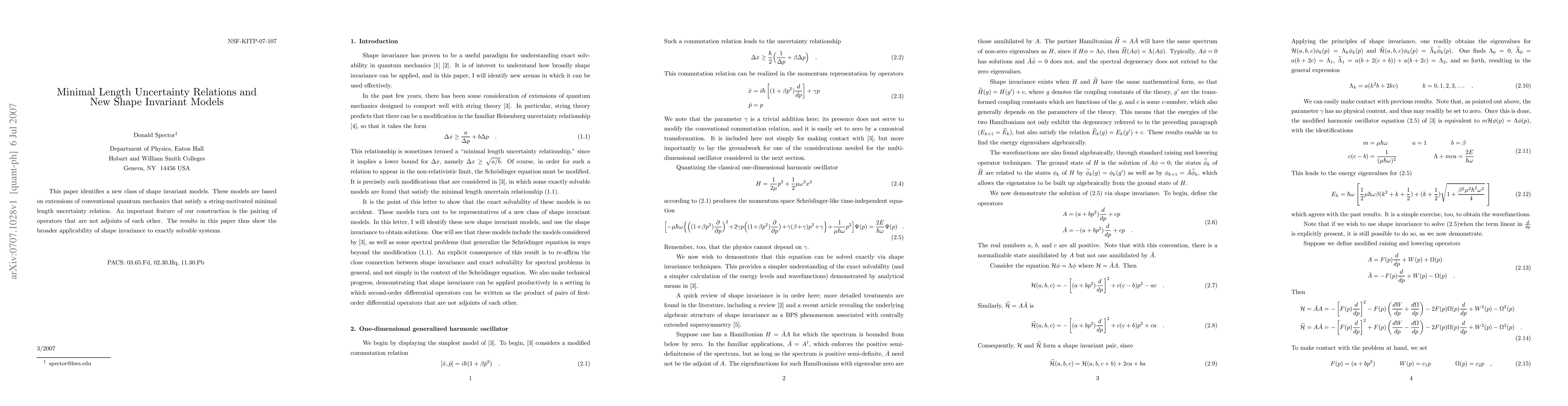 The paper introduces new shape invariant models and demonstrates their applicability to systems with minimal length uncertainty relations, providing a method for algebraically determining eigenvalues and wavefunctions.