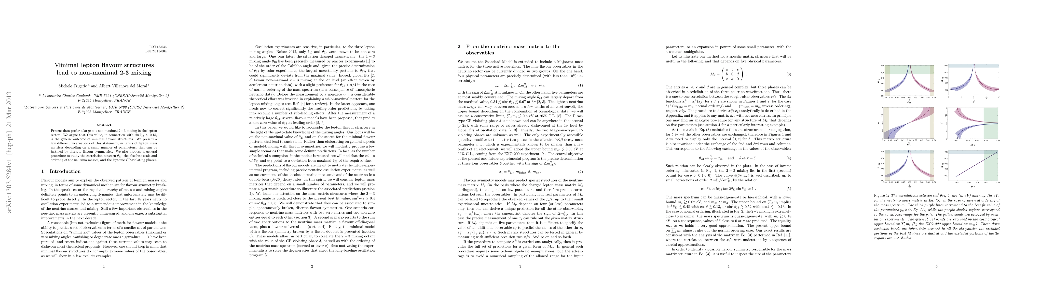 Present data prefer a large but non-maximal 2-3 mixing in the lepton sector. We argue that this value, in connection with $\sin\theta_{13}\simeq 0.15$, is the generic outcome of minimal flavour structures. We present a few different incarnations of this statement, in terms of lepton mass matrices depending on a small number of parameters, that can be justified by discrete flavour symmetries. We also propose a general procedure to study the correlation between $\theta_{23}$, the absolute scale and ordering of the neutrino masses, and the leptonic CP-violating phases.