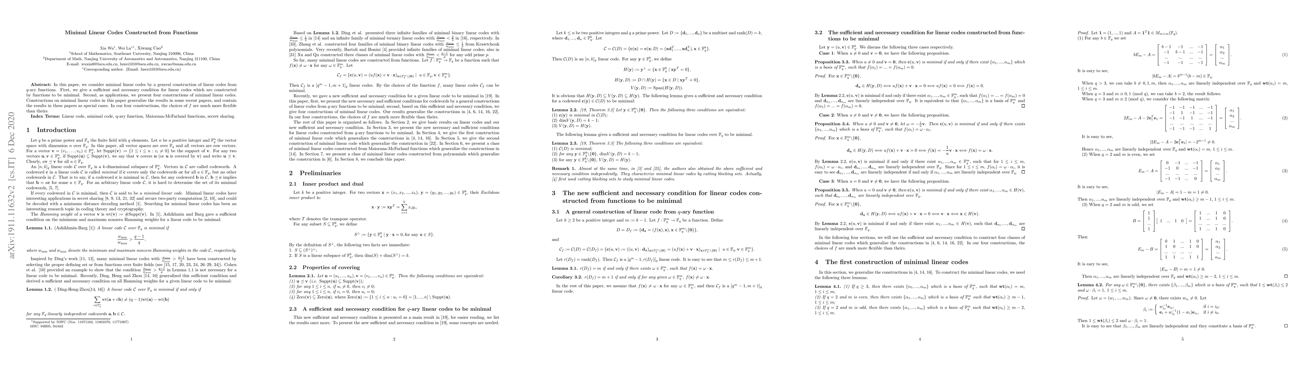 This paper outlines conditions for minimal linear codes derived from q-ary functions and presents four construction methods for these codes, including recent results as special cases.