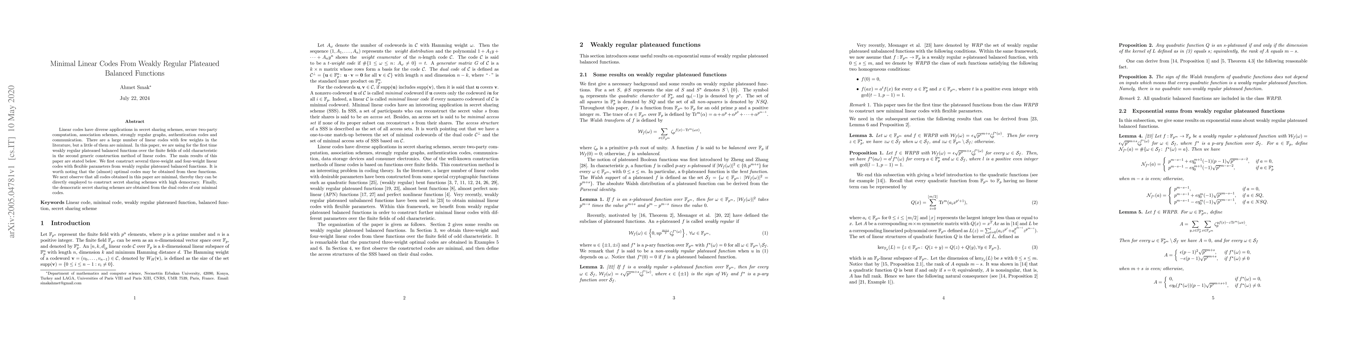 This paper constructs minimal linear codes with three-weight and four-weight from weakly regular plateaued balanced functions over finite fields of odd characteristic. The resulting codes are almost optimal and can directly facilitate the construction of secret sharing schemes with high democracy.