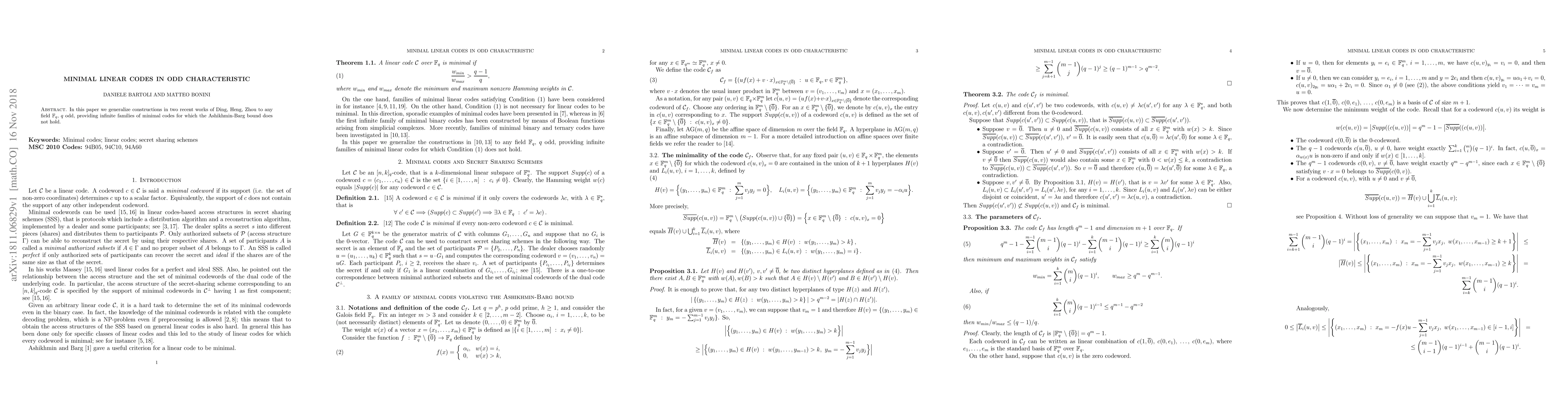 This paper generalizes constructions of minimal codes to odd fields, providing infinite families that bypass the Ashikhmin-Barg bound. It expands on previous work in this area, contributing to our understanding of minimal linear codes.