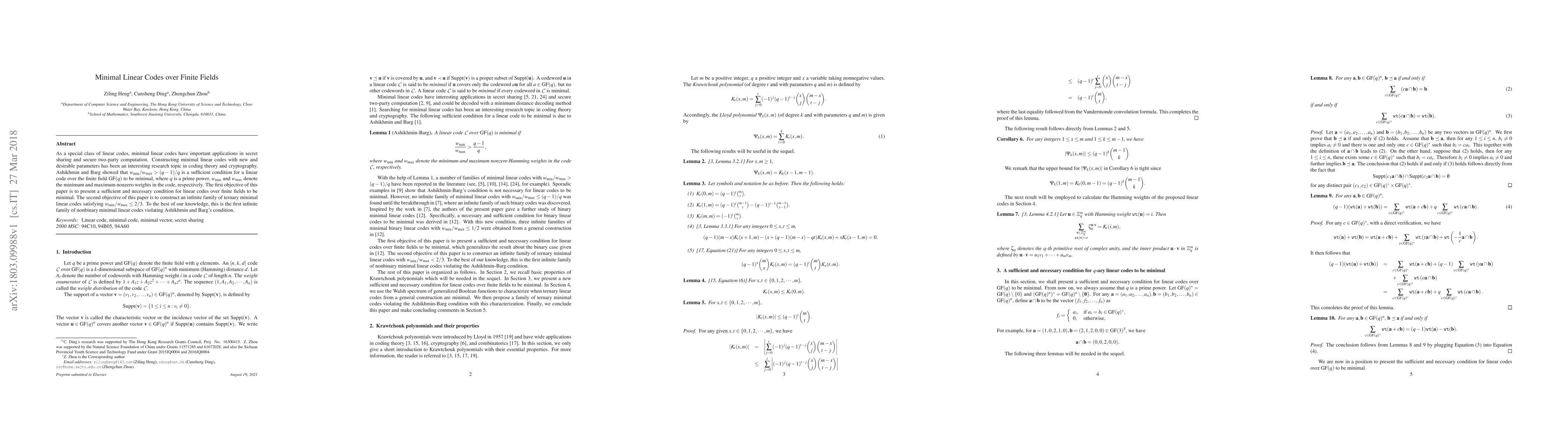 This paper establishes a sufficient and necessary condition for linear codes over finite fields to be minimal and constructs an infinite family of ternary minimal linear codes that violate a previously known condition by Ashikhmin and Barg, showcasing new parameters in coding theory and cryptography.