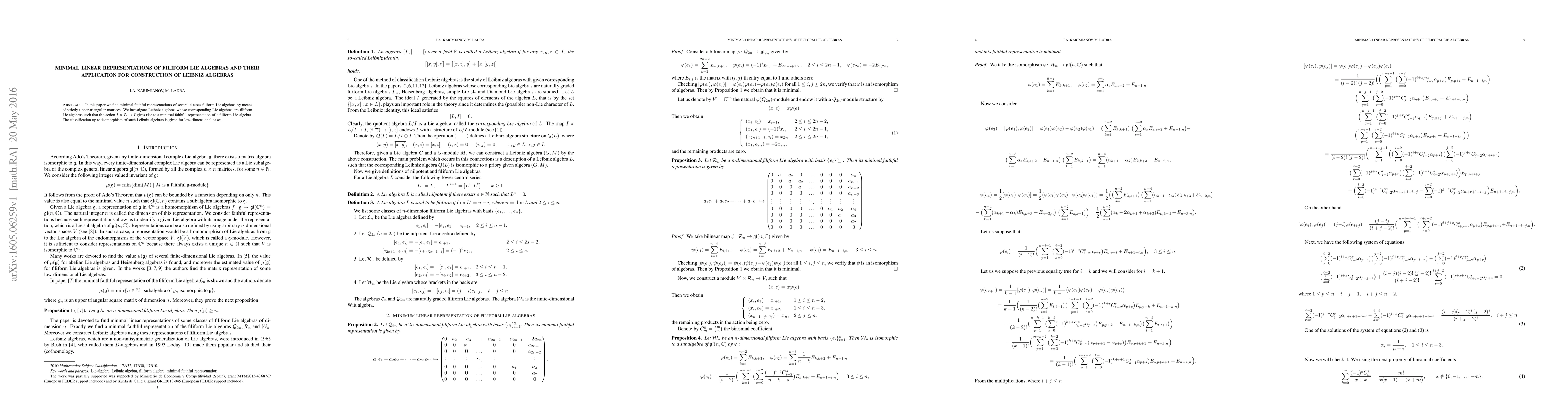 Summary: This paper identifies minimal faithful representations of specific filiform Lie algebras using strictly upper-triangular matrices and explores associated Leibniz algebras, providing a classification of these structures for low dimensions.