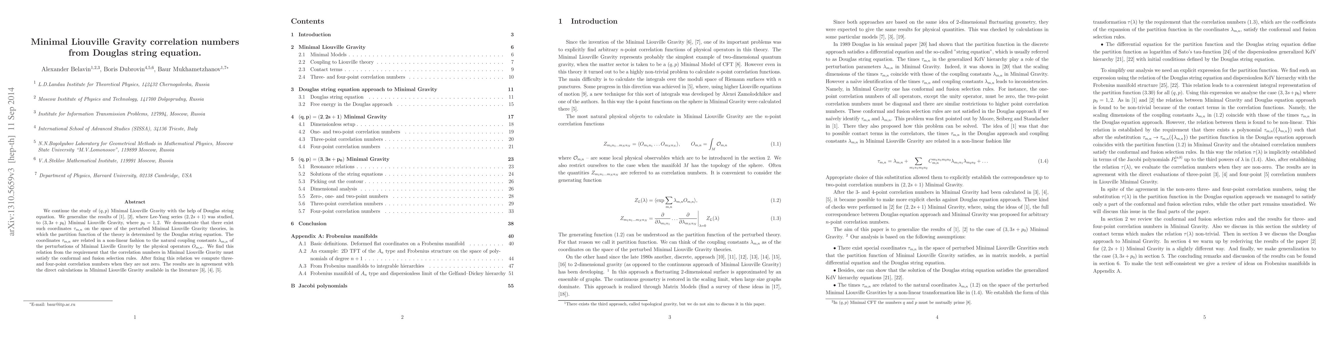 This paper generalizes the study of $(q,p)$ Minimal Liouville Gravity using the Douglas string equation, finding coordinates $\tau_{m,n}$ that determine the partition function. It establishes a non-linear relation between these coordinates and coupling constants $\lambda_{m,n}$, ensuring correlation numbers satisfy conformal and fusion rules, and computes three- and four-point correlation numbers that match existing literature.