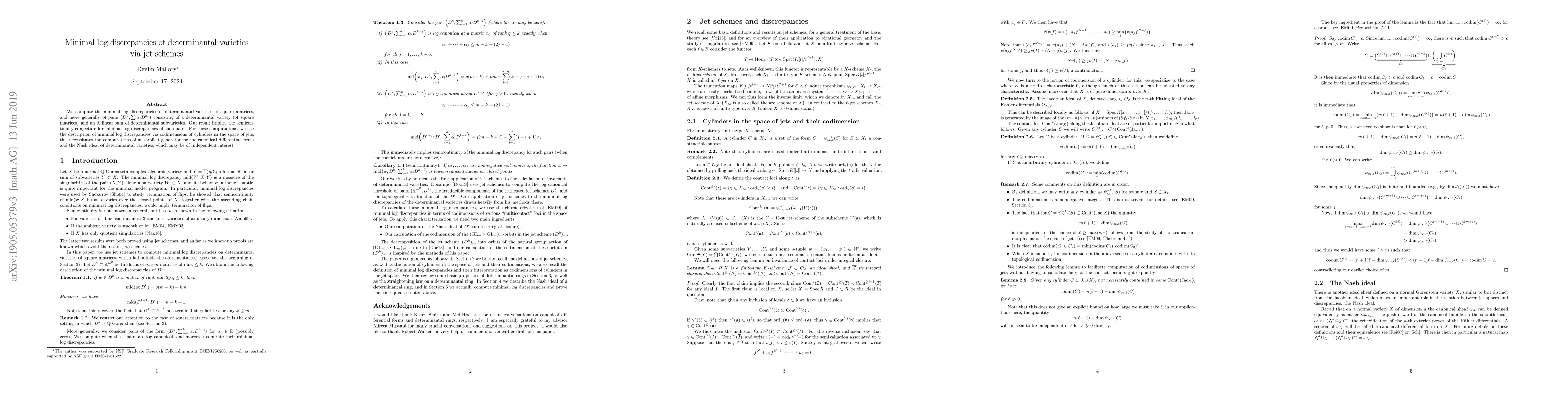 This paper computes the minimal log discrepancies of determinantal varieties and related pairs, using jet schemes and the semicontinuity of these discrepancies. The method involves determining explicit generators for canonical differential forms and Nash ideals, contributing to the broader understanding of these geometric objects.