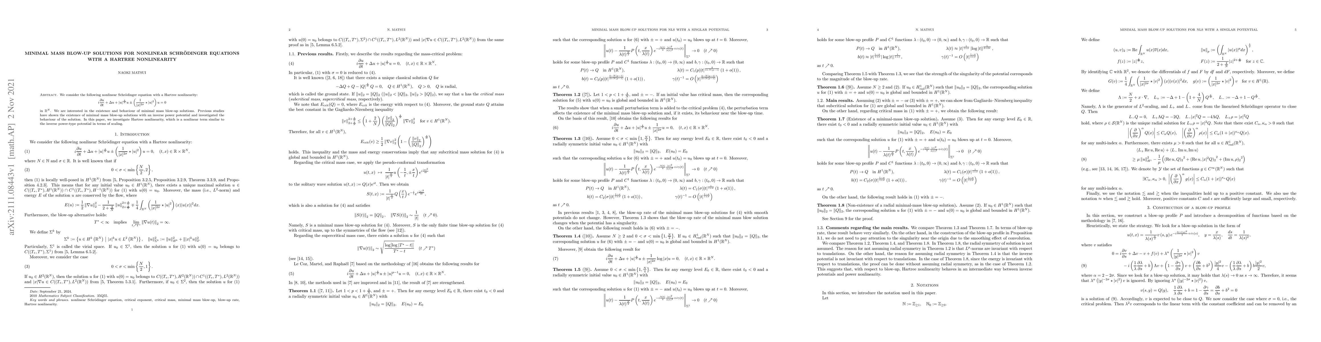 This paper explores minimal mass blow-up solutions for a nonlinear Schrödinger equation featuring a Hartree nonlinearity in $\mathbb{R}^N$. It investigates the existence and behavior of these solutions, comparing them to previous studies on inverse power-type potentials.
