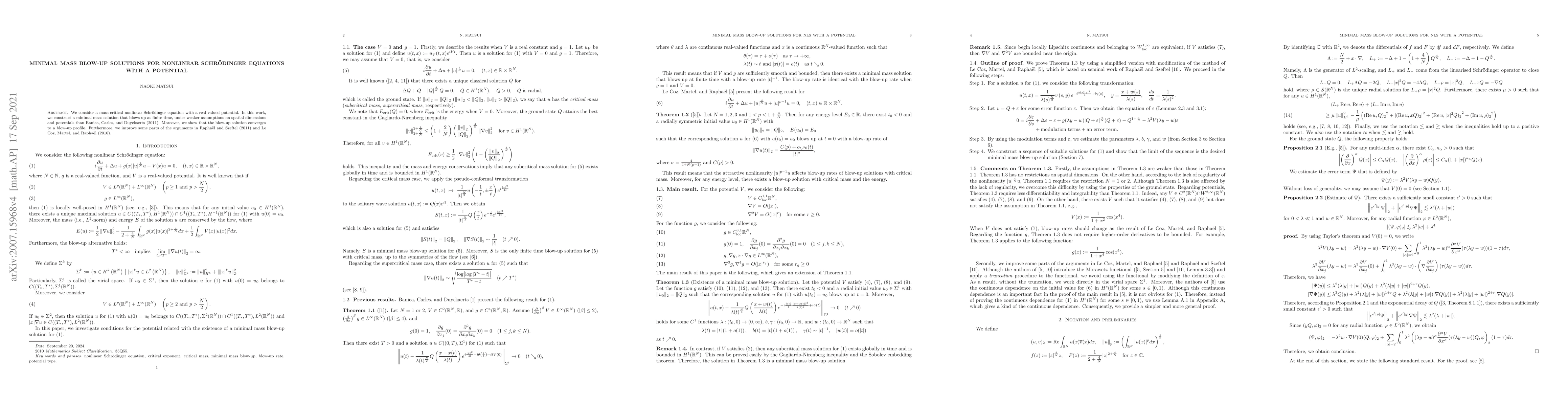 This paper constructs a minimal mass blow-up solution for a mass critical nonlinear Schrödinger equation with a real-valued potential, under relaxed assumptions compared to previous work. It demonstrates the convergence of the blow-up solution to a profile and refines arguments from earlier studies.