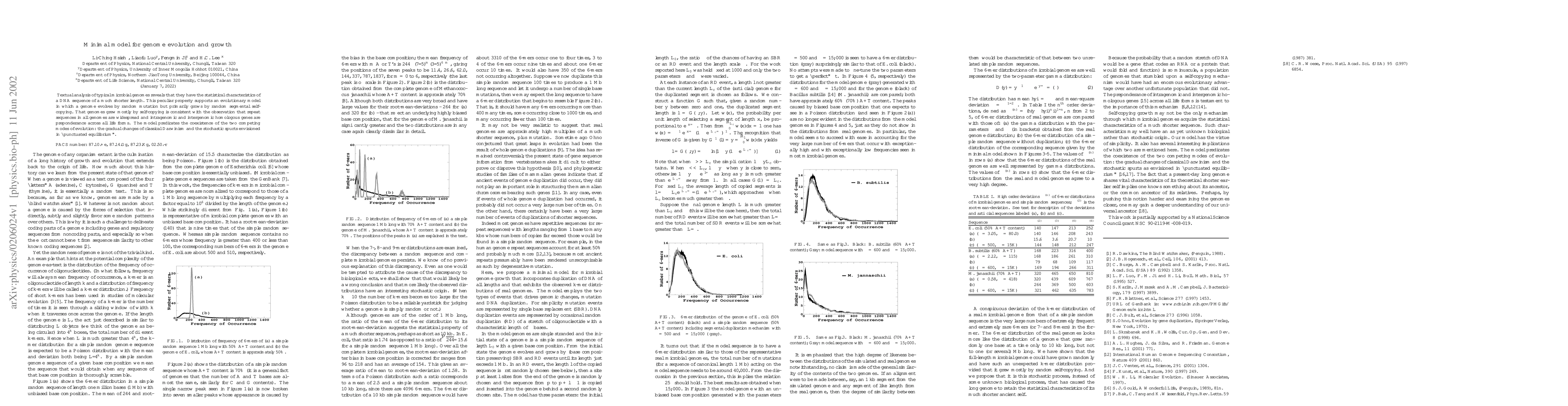 Textual analysis of typical microbial genomes reveals that they have the statistical characteristics of a DNA sequence of a much shorter length. This peculiar property supports an evolutionary model in which a genome evolves by random mutation but primarily grows by random segmental self-copying. That genomes grew mostly by self-copying is consistent with the observation that repeat sequences in all genomes are widespread and intragenomic and intergenomic homologous genes are preponderance across all life forms. The model predicates the coexistence of the two competing modes of evolution: the gradual changes of classical Darwinism and the stochastic spurts envisioned in ``punctuated equilibrium''.