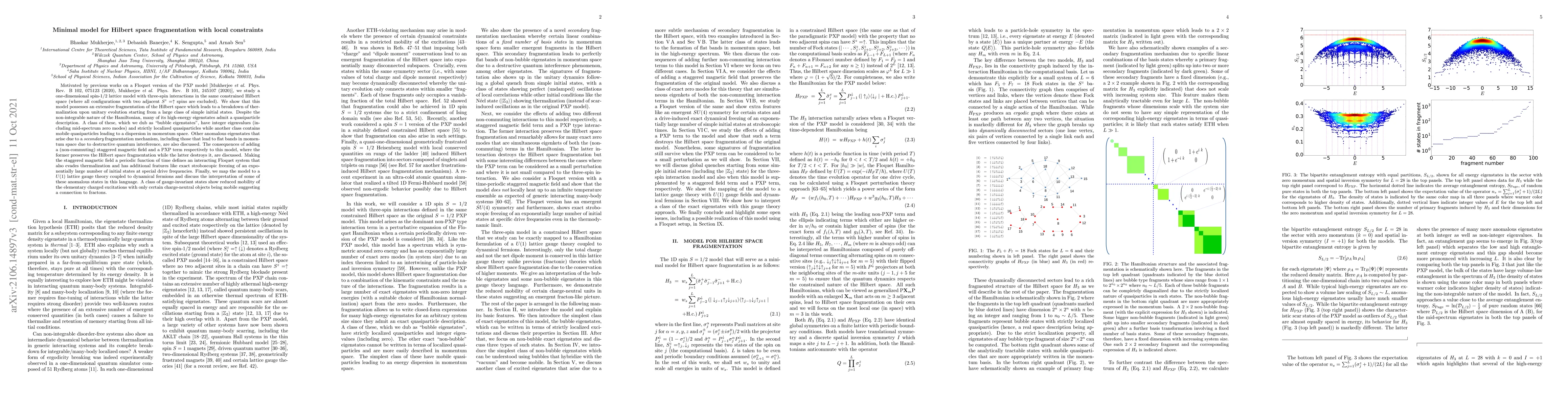 A one-dimensional spin-1/2 lattice model with three-spin interactions exhibits extensive Hilbert space fragmentation upon unitary evolution, leading to a breakdown of thermalization and emergence of localized quasiparticle states.