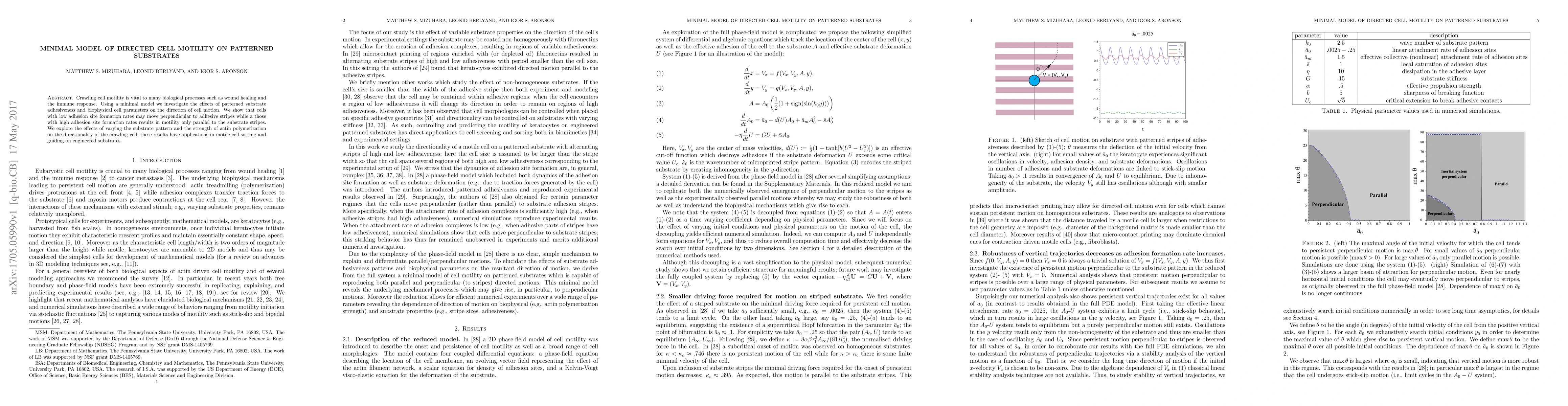 Crawling cell motility is vital to many biological processes such as wound healing and the immune response. Using a minimal model we investigate the effects of patterned substrate adhesiveness and biophysical cell parameters on the direction of cell motion. We show that cells with low adhesion site formation rates may move perpendicular to adhesive stripes while a those with high adhesion site formation rates results in motility only parallel to the substrate stripes. We explore the effects of varying the substrate pattern and the strength of actin polymerization on the directionality of the crawling cell; these results have applications in motile cell sorting and guiding on engineered substrates.