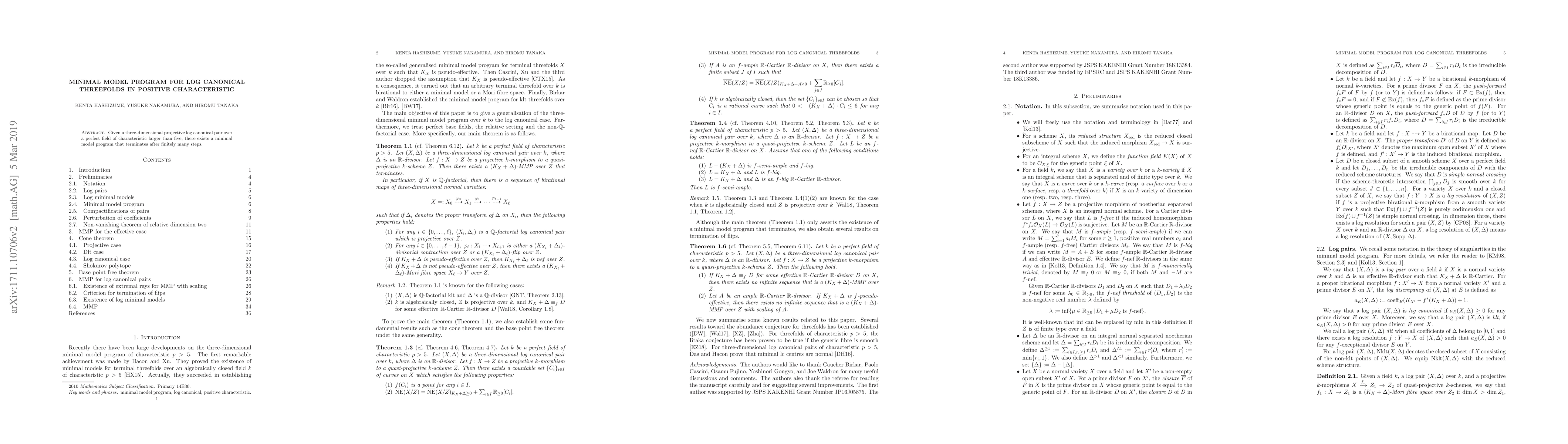 Summary: The paper establishes a minimal model program for three-dimensional projective log canonical pairs in positive characteristic greater than five, proving that the program terminates after a finite number of steps. This provides a finite termination result for the minimal model program in this context.