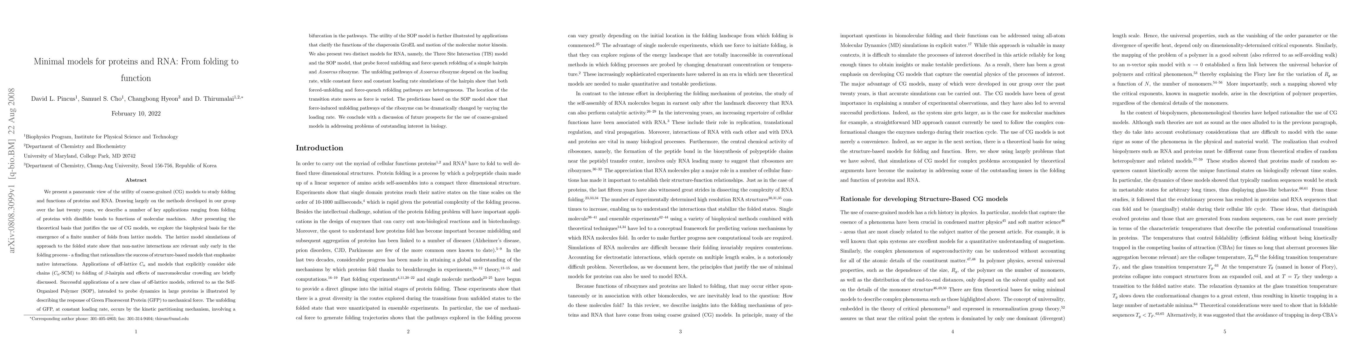 Researchers developed coarse-grained models to study protein and RNA folding and function, finding that non-native interactions play a minor role in the early stages of folding and that these models can accurately predict complex biological processes such as force-induced unfolding.