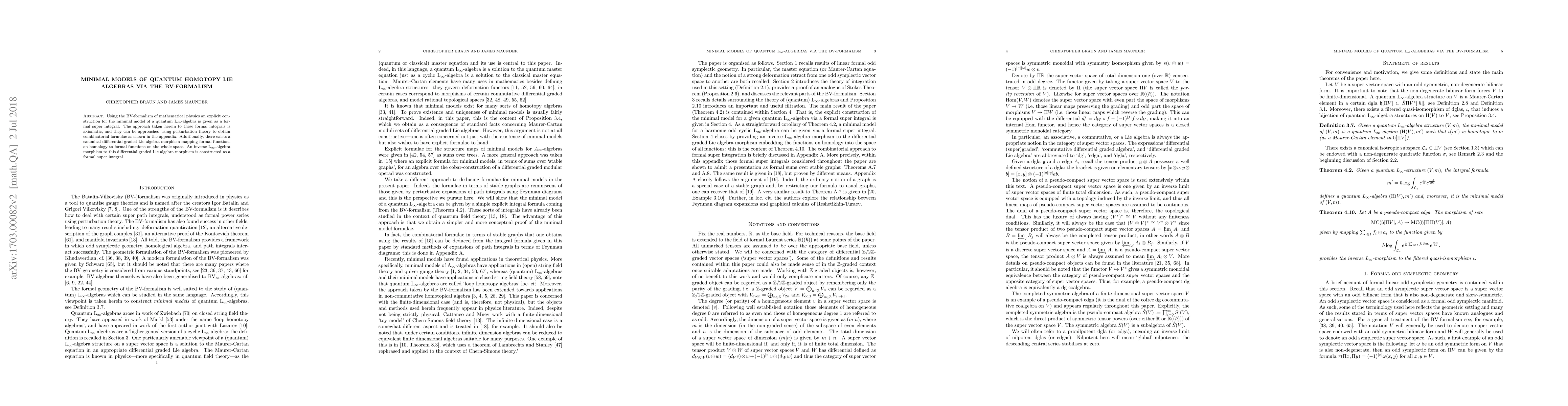 Using the BV-formalism of mathematical physics an explicit construction for the minimal model of a quantum L-infinity-algebra is given as a formal super integral. The approach taken herein to these formal integrals is axiomatic; they can be approached using perturbation theory to obtain combinatorial formulae as shown in the appendix. Additionally, there exists a canonical differential graded Lie algebra morphism mapping formal functions on homology to formal functions on the whole space. An L-infinity-algebra morphism inverse to this differential graded Lie algebra morphism on the level of homology is constructed as a formal super integral.