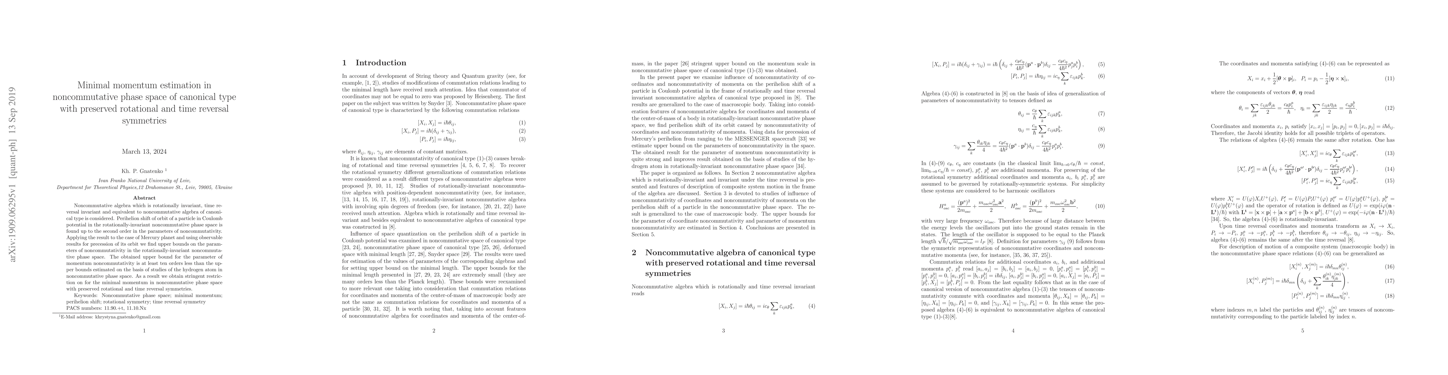 Noncommutative algebra which is rotationally invariant, time reversal invariant and equivalent to noncommutative algebra of canonical type is considered. Perihelion shift of orbit of a particle in Coulomb potential in the rotationally-invariant noncommutative phase space is found up to the second order in the parameters of noncommutativity. Applying the result to the case of Mercury planet and using observable results for precession of its orbit we find upper bounds on the parameters of noncommutativity in the rotationally-invariant noncommutative phase space. The obtained upper bound for the parameter of momentum noncommutativity is at least ten orders less than the upper bounds estimated on the basis of studies of the hydrogen atom in noncommutative phase space. As a result we obtain stringent restriction on for the minimal momentum in noncommutative phase space with preserved rotational and time reversal symmetries.