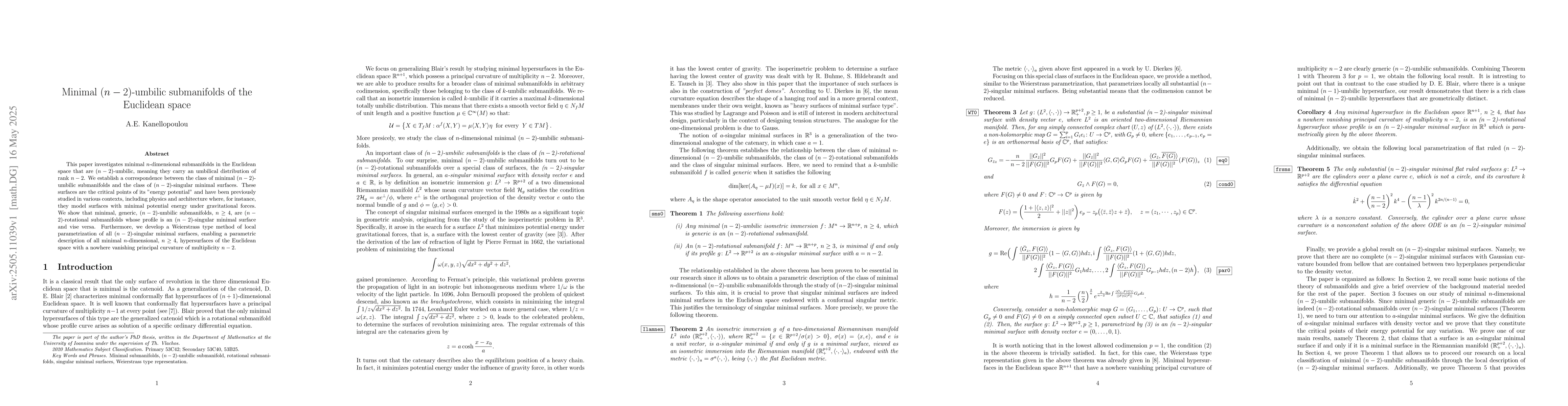 The paper introduces a novel Weierstrass-type method for parametrizing (n-2)-singular minimal surfaces, extending the understanding of minimal submanifolds in Euclidean space.